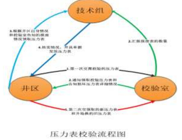 (3)如果井區(qū)用表數(shù)量減少,工井區(qū)及時(shí)上報(bào)技術(shù)組, 技術(shù)組并及時(shí)告知校驗(yàn)室,校驗(yàn)室計(jì)算該井區(qū)每個(gè)月工作量 減少多少,按照減少后的工作量,控制每個(gè)月的壓力表校驗(yàn) 數(shù)量。