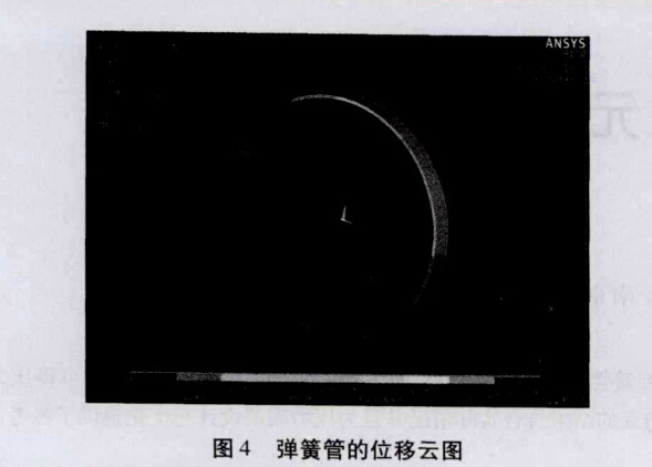 壓力表的在受到外加壓力的情況下,彈簧管的半徑 比沒有施加作用力的情況下的半徑增大,其變化的云圖 如圖2所示: