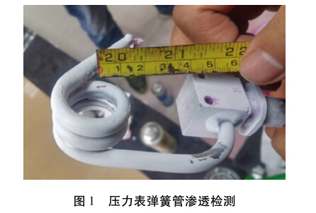 壓力表彈簧管中部旋轉兩圈半的彈簧管外表 面可以看到長約5 mm滲透性溝槽。