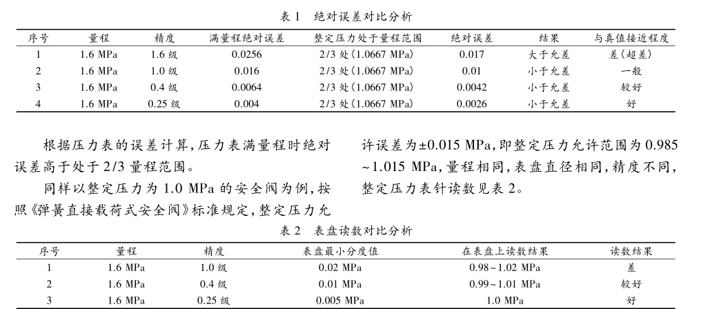 安全閥校驗用壓力表誤差分析與合理選用