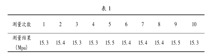 3.4.1被檢壓力表重復性測量引入的標準不確定度u (PM) 在檢測過程中發現15Mpa這點變化較大,對此在這 點上以重復性條件下測量10次,取其升壓與降壓平均值 作為測量結果。