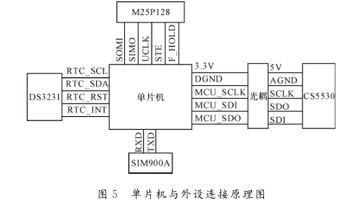 在數(shù)字電路部分,RTC時(shí)鐘DS3231為單片機(jī) 提供時(shí)間基準(zhǔn)。當(dāng)壓力采樣時(shí)刻到來(lái),單片機(jī)會(huì)通 過(guò)光耦啟動(dòng)CS5530的A/D轉(zhuǎn)換,并且保存當(dāng)前日