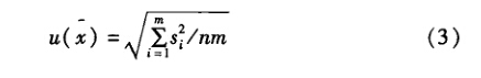 合并樣本標準差的基本思想是:對處于統計控制 狀態下的測量過程,被測量X的單次測量結果\的標 準差可以認為相等。這一思想可以進一步推廣到 性質相同的不同觀測結果。譬如,根據計量檢定規程, 在某一儀器全量程范圍內均勻選取m個檢定點,每個 點重復測量通常較小,如為2等)次;當對各點^ 次測量值所計算的實驗標準差&沒有明顯差異時,則 可用合并樣本標準差的思想方法,評定計算各受檢點 由測量重復性而引起的不確定度分量,其計算公式如 公式(2)和(3)。