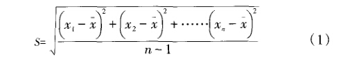 式中:S為標(biāo)準(zhǔn)偏差為測(cè)量次數(shù);為各次 的測(cè)量值,i=l…n0
