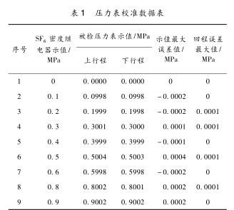 通過兩種方法的對比,發現被檢壓力表10個 點的示值誤差最大值及回程誤差最大值均在允差 內,且兩種方法得到的數據值相差極小。此后又 通過不同等級的壓力表用同樣的比對方法進行試 驗研究,通過對測量數據進行分析,發現使用sf6 密度繼電器在線校準法不但操作便捷,而且測量 值也與實驗室標準裝置相差極小,故采用此種在 線校驗法切實可行。