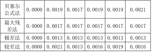 5減少測(cè)量次數(shù)為3次時(shí)各種估計(jì)方法的計(jì)算結(jié)果 理論上測(cè)量次數(shù)越多,隨機(jī)誤差越小。假設(shè)在和同環(huán)境下測(cè)量次數(shù)為3次,數(shù)據(jù)取自上試驗(yàn)中的前二次測(cè)量時(shí),各 種不同估計(jì)方法得山的標(biāo)準(zhǔn)偏差結(jié)果s (Pm)如下(單位: