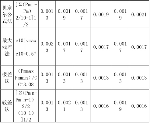 根據(jù)各估算方法的和應(yīng)公式’計(jì)算各檢定點(diǎn)10次測(cè)量 標(biāo)準(zhǔn)偏差如下: