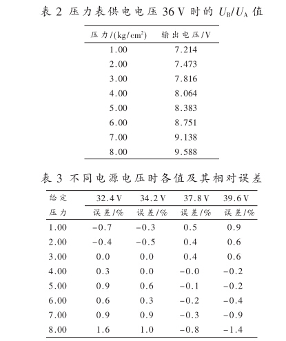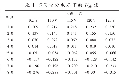 可見,UkB不僅與傳感器阻抗的相對變化量成正比,還與 電源電壓成正比。因此單純測量UkB不能計算出壓力 值,除非使用恒壓源供電方式,UkB才僅與y成正比,單 值地對應壓力值。表1是不同電源電壓下測得UkB的實 際數據。從表1可見,UkB隨著電源電壓正比例變化。