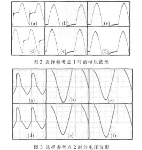 從圖1可知,對于直流磁電儀表,電壓的測量相對 要簡單一些,而交流表則復雜一些,其兩條電流支路是 半波整流電路,即流過各支路的電流是半波脈動直流。 若取參考點1,則測得的Ua和Ub波形見圖2,其中(a)、 (d)是完整波形,可見出現了嚴重的畸變,這是由于電路 中存在感性元件的緣故;(b)、(c)是壓力為零時Ua和U 的正半周有效波形,(e)、(f)是壓力為8kg/cm2時Ua和U 的正半周有效波形。通過分析可知,只要正確提取每個 電壓的正半周信號,濾波后再完成Ub/ Ua運算,壓力就 可準確計算。同理,若取參考點2,據圖3所示波形可 知,只要正確提取每個電壓的負半周信號,然后完成Ub/ Ua運算,壓力同樣可準確計算。