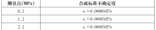 活塞式壓力計準確度等級為0.05級,本例中在0.2MPa、1.2 MPa,2.2 MPa處進行測量,在此區間屬均勻分布,k =芯