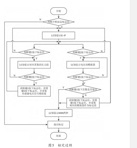 為了減少誤差,保證數字壓力表的精度,可以采用 多點校準,也就是利用多條線段來模擬接近真實的壓 力傳感器的輸出曲線[4]。本文采用的是三點校準的方 法,分別是在零點,半量程和滿量程這三個點,設計精度 0.5%左右。具體標定過程如圖5所示。