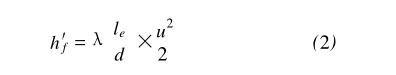 式中:hf為流體在長度為l的一段圓直管線中的流 動阻力;A為流體的摩擦系數;1為管線長度為 管線直徑;U2為流體流動速度。