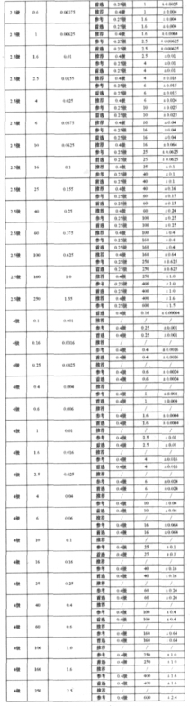 為解決這一問題,方便檢定員日 常檢定一般壓力表時,對精密壓力表 的選擇,依據JJG52-1999《彈簧管 式一般壓力表、壓力真空表及真空表 檢定規程》及《壓力表200問》一書 編制‘‘檢定一般壓力表時選擇精密 壓力表有關技術指標匹配對照表”。 供計量技術人員及壓力表檢定人員以 及計量器具采購人員使用。