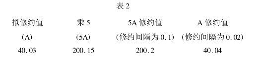 (40. 02 + 40. 04 + 40. 02 + 40. 04)/4 = 40. 03 ;直接修 約,其結(jié)果為40. 03。由于該表分度值為0. 2 ,讀數(shù)時(shí)按 1/ 10估讀,因此修約間隔為0. 02 ,而上述修約結(jié)果并 0.02的整數(shù)倍,因此結(jié)果錯(cuò)誤。正確的修約過程如表 2所示。