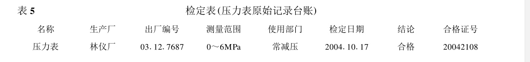 因壓力表原始記錄臺賬上一個合格證號對應一 塊壓力表,在更新合格證號的同時,壓力表出廠編號 也隨之自動更新。這樣計量管理人員只需根據壓力 表臺賬對現場壓力表安裝情況進行抽查,如發現合 格證號、出廠編號與臺賬數據不一致,即可要求該單 位立即整改,從而避免了將新檢定的壓力表合格證 號撕下貼于舊表上而不真的進行更換的現象。