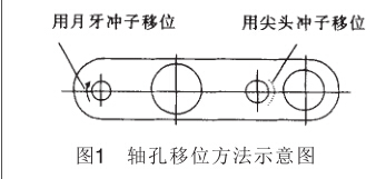 中心齒輪與扇形齒輪配合松,多 由于齒牙或軸孔被磨損所致。在查明 齒輪軸沒有被磨損的情況下,一般采 用將中心齒輪與扇形齒輪的兩軸孔間 距離縮小的方法。如圖1所示,用偏心 沖子或尖頭沖子置于兩軸孔相對方向 的外側,以鐘表榔頭擊沖子進行移位。 移位后的軸孔,應以鉸刀修圓修光,并 須保證同軸上、下兩軸孔同心。若經過 上面辦法得不到解決,多是齒牙磨損 嚴重或輪軸被磨細的緣故,此類情況 難以修復,應更換新件。