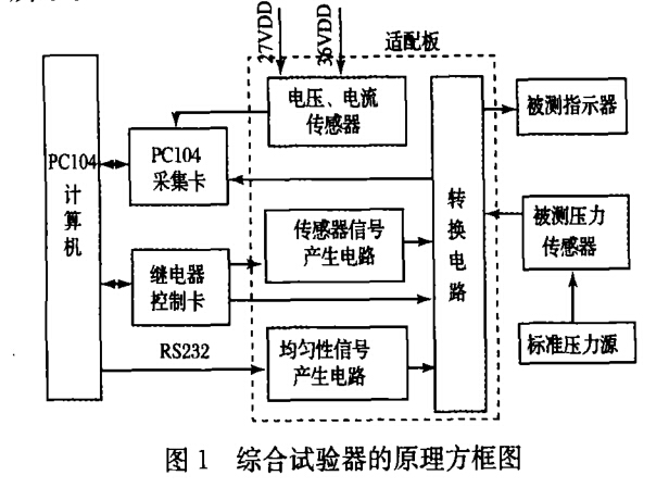 溫度表/壓力表綜合試驗器由PC104總線計算 機、PC104數據采集卡、繼電器控制卡、適配板、電 源、標準壓力源和被測設備及接口等部件組成。