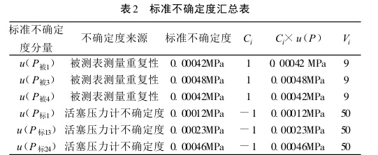 標(biāo)準(zhǔn)不確定度匯總表,見(jiàn)表2。