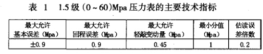 (一)1.5級(0~60)Mpa壓力表的主要技術(shù)指標(見表1)