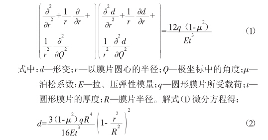 泊松系數;£:一拉、壓彈性模量;一圓形膜片所受載荷;一