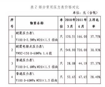 針對(duì)壓力表的質(zhì)量現(xiàn)狀,中原油田高度重視,2010年 將壓力表列為重點(diǎn)治理物資,由物資供應(yīng)處質(zhì)量管理部門牽 頭對(duì)壓力表的質(zhì)量進(jìn)行調(diào)查、分析。經(jīng)過近一年時(shí)間的摸索、 論證、搜尋供應(yīng)商,2011年中原油田開始了一系列獨(dú)具特 色的嘗試:在組織使用單位、技術(shù)部門到基層站井細(xì)致做調(diào)查、發(fā)現(xiàn)問題、分析問題的基礎(chǔ)上,通過嚴(yán)格制定標(biāo)準(zhǔn)、 與供應(yīng)商簽署承諾書、引進(jìn)外部供應(yīng)商給內(nèi)部改制企業(yè)供 應(yīng)商制造危機(jī)感、加強(qiáng)檢驗(yàn)等方式使得壓力表的質(zhì)量問題 得到了有效控制。