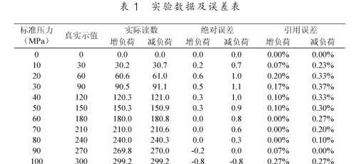 本實驗首先選用了某儀表廠生產的壓力表進行驗證,實驗 數據及誤差如表1所示。