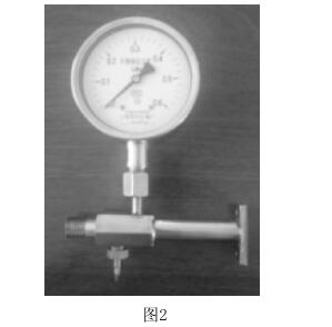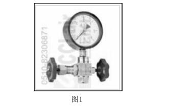 從國內和國外的核電站看,傳統的壓力表組件通常有一個壓力表、一 個三通的閥和一個開關組成。如圖1:
