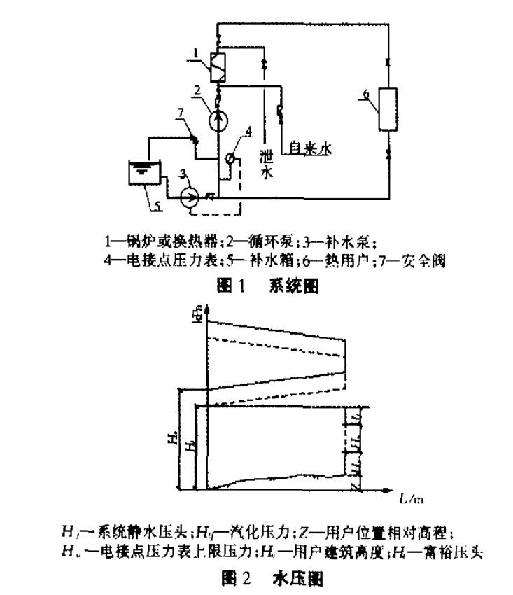 目前,熱水采暖系統(tǒng)的膨脹定壓方式多種多樣,各有優(yōu)缺點。 電接點壓力表加補給水泵定壓方式以其投資省、占地少、耗電少. 設(shè)備簡單等優(yōu)點得到廣泛應(yīng)用。下面就其應(yīng)用中的一些問題加 以闡述。