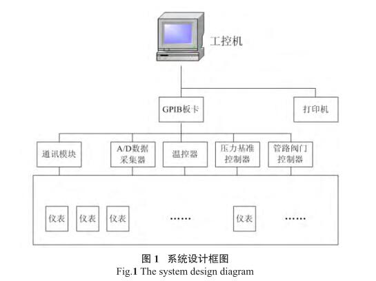 本設計中的智能壓力儀表自動標定裝置主要由工控機、 測試儀器、通訊巡檢模塊、環境溫箱、溫箱控制器、管路閥門、 增壓泵等組成。