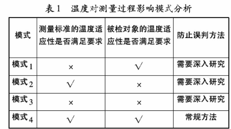 與標準實i環境中進行計量檢定操作相比,在偏 離標準實驗室環境的現場開展計量檢定,溫度的偏離 將對所用測量標準和被檢對象造成很大影響,從而增 大了 “誤判,,的風險。可分為4種模式見表K