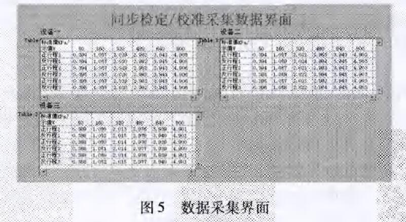 該模塊主要是通過數據采集卡采集校準過程中儀 表所產生的電流信號、電壓信號以及RS232信號。數 據采集界面如圖5所示。