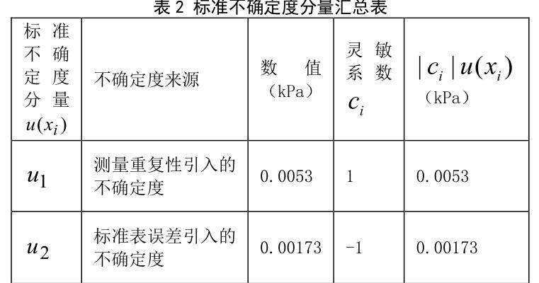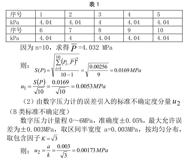 (1)測量重復性的影響:在檢定規程規定的條件下, 壓力表多次重復測量引入的A類標準不確定度